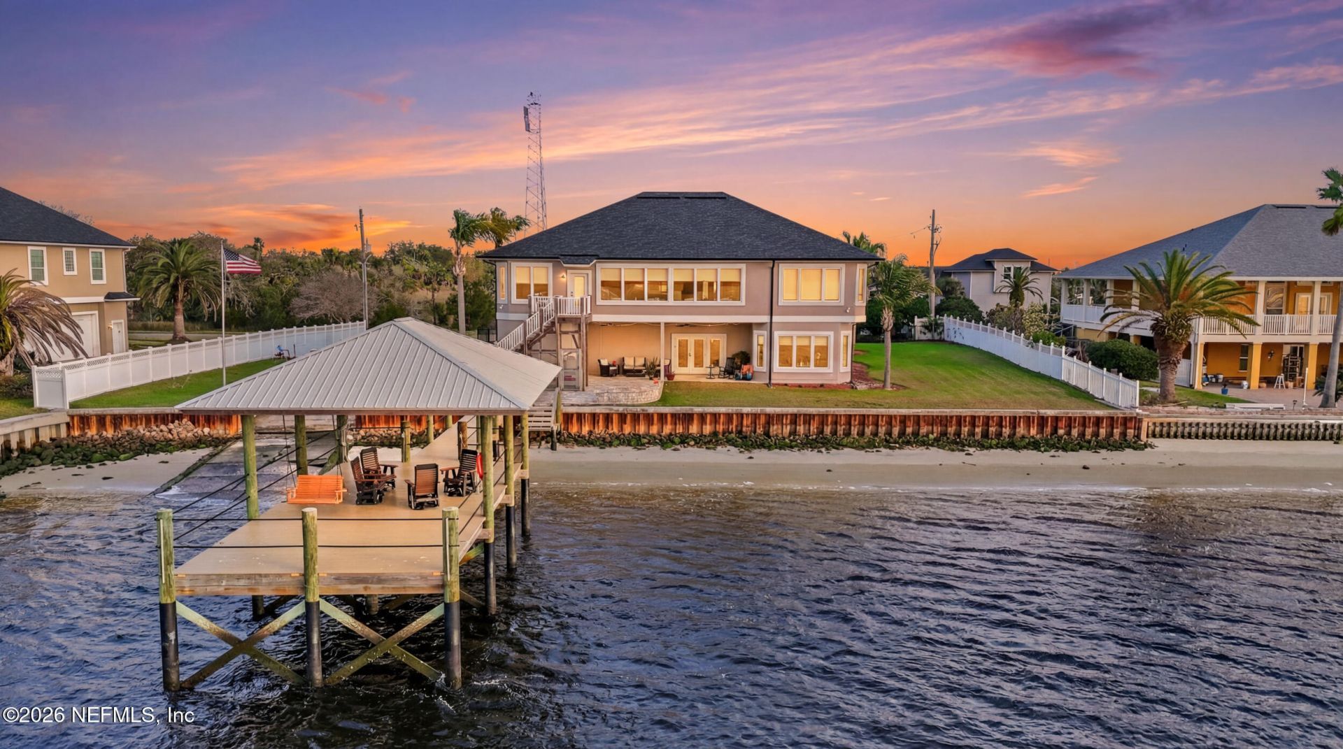 Set on over HALF AN ACRE LOT with approximately 160 FEET of direct frontage along the ST.JOHNS RIVER, this exceptional waterfront property offers expansive views and DEEP WATER ACCESS, private DOCK AND BOAT RAMP--ideal for effortless boating WITHOUT TIDAL LIMITATIONS. Tucked away in a quiet community with no HOA, the property is fenced with an automatic gate, offering a serene outdoor setting with wide-open views, coastal breezes, and a natural shoreline that reveals a SANDY BEACH AT LOW TIDE.T...Set on over HALF AN ACRE LOT with approximately 160 FEET of direct frontage along the ST.JOHNS RIVER, this exceptional waterfront property offers expansive views and DEEP WATER ACCESS, private DOCK AND BOAT RAMP--ideal for effortless boating WITHOUT TIDAL LIMITATIONS. Tucked away in a quiet community with no HOA, the property is fenced with an automatic gate, offering a serene outdoor setting with wide-open views, coastal breezes, and a natural shoreline that reveals a SANDY BEACH AT LOW TIDE.The interior is filled with natural sunlight and thoughtfully updated for comfort and efficiency. It features a geothermal HVAC system, updated insulated ductwork, LED lighting, and Pella double-pane, Low-E, impact-rated windows. Additional interior highlights include luxury vinyl plank flooring and a newly installed 1,000 lb capacity cable elevator. The open-concept kitchen overlooks the living areas and the river, boasting updated cabinetry, quartz countertops and backsplash along with stainless steel appliances. The upper level includes three bedrooms, two bathrooms, a laundry room, and a dining area, alongside a living room with a fireplace and a dedicated sitting area where you will enjoy the water views. The lower level, accessible via stairs or elevator, features a large family room with a fireplace--perfect for entertaining--and an additional bedroom with its own sitting area and full bathroom. The property features a long driveway and a three-car garage equipped with a storage closet and a full bathroom.The lifestyle here is truly unmatched. Enjoy the breeze off the water while watching dolphins, manatees, and native birdlife. The ever-changing scenery includes passing ships traveling to and from the Jacksonville port and even views of distant rocket launches on clear nights. This property offers a rare balance of privacy and natural beauty, providing not just a home, but a distinctive waterfront lifestyle.